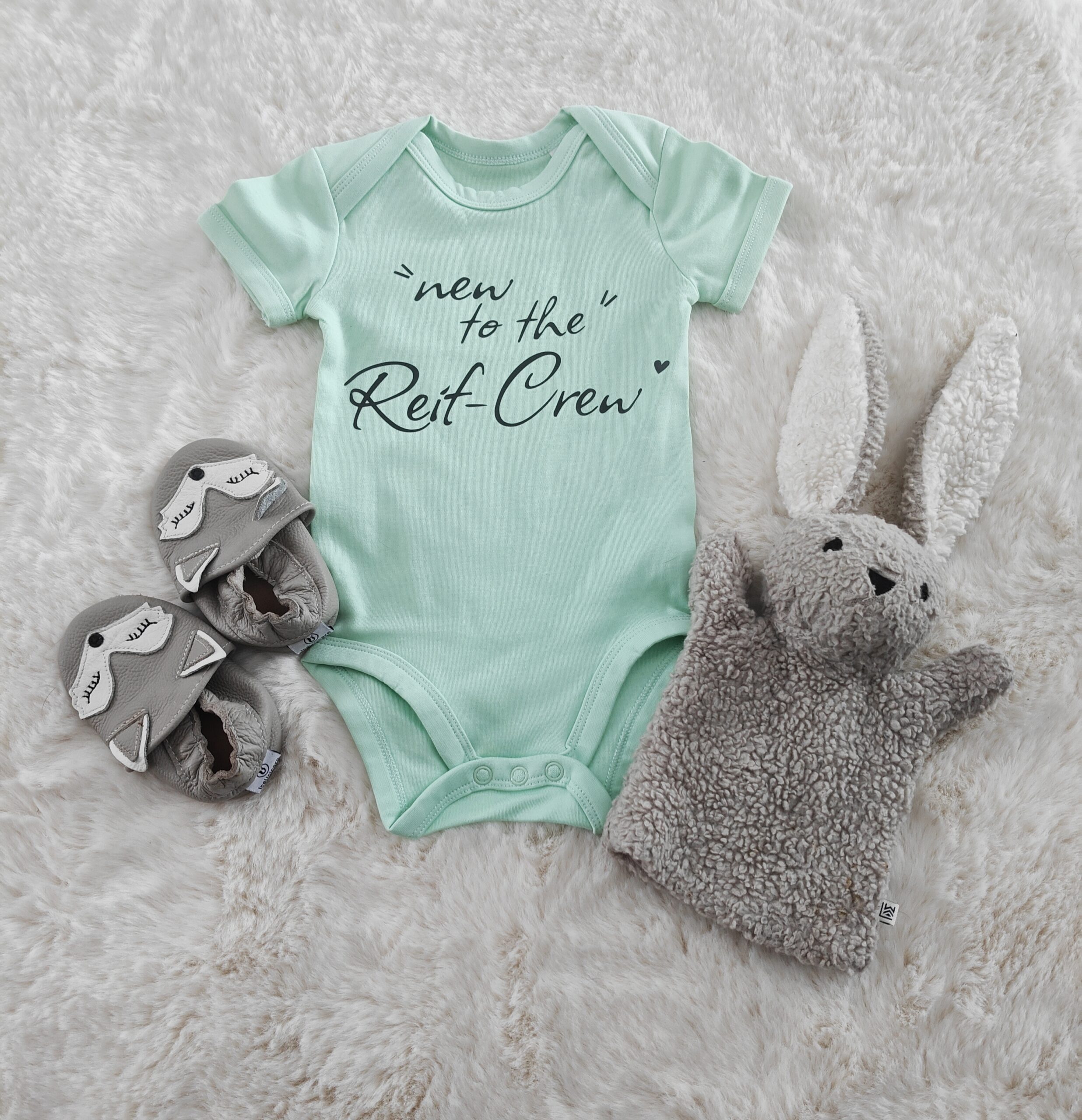 Unser Body „New to the Crew“ ist das perfekte Outfit für kleine Neuankömmlinge – modern, zeitlos und ideal zur Baby-Verkündung oder als besonderes Geschenk.